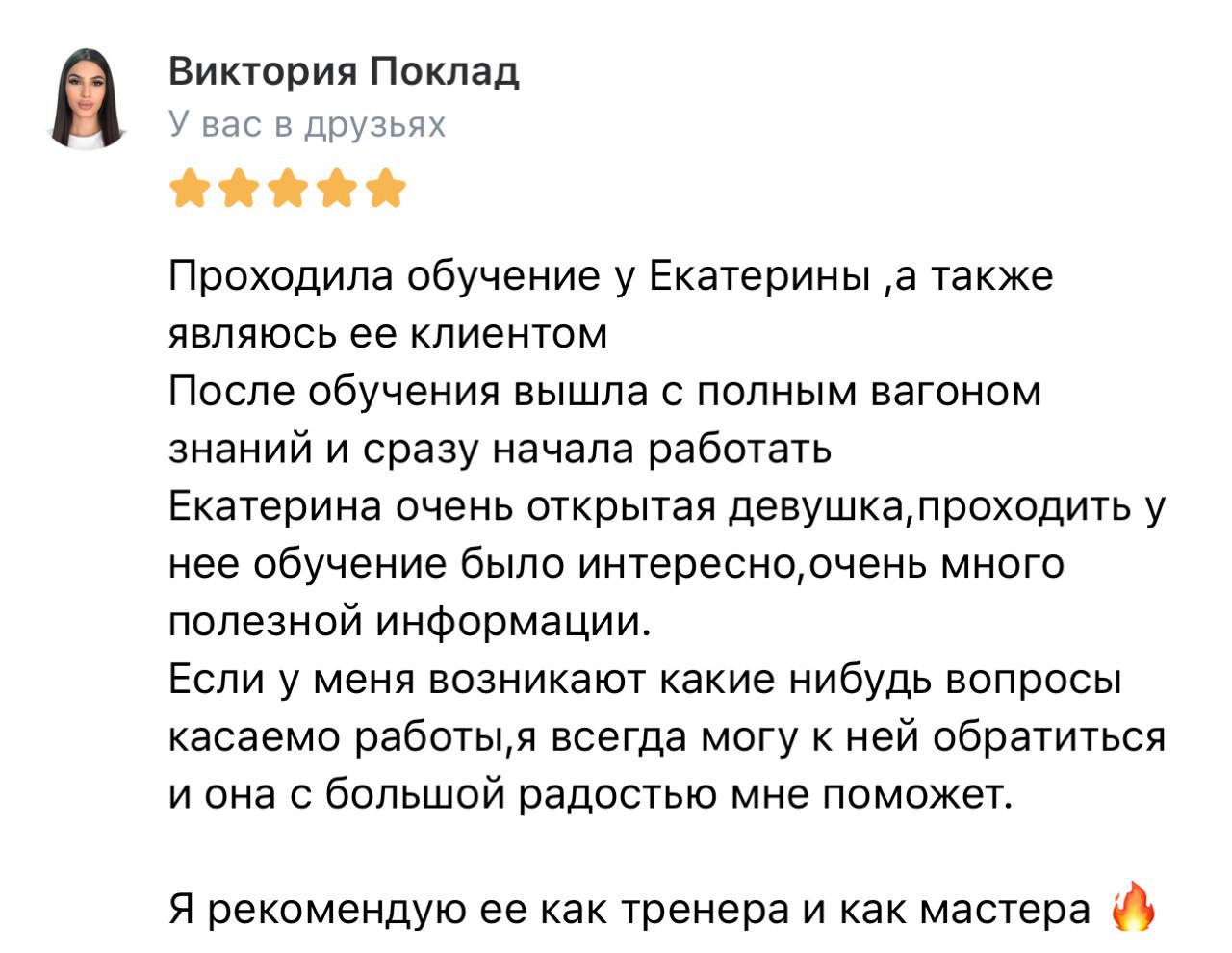 Я не просто учу клеить ресницы. Я учу тебя строить успешный бизнес. Ты получишь работающие инструменты по привлечению клиентов и формированию прайса уже во время обучения.